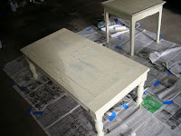 I am really pleased at how it turned out, and can't wait to bring the pieces back into the living room. I'll post a pic when I do. What's even better is that Joe likes it too, although I do think he's a little concerned that I'll get crackle happy and try to do all the furniture that we have, which I won't. I don't like everything too matchy-matchy. I love the accomplished feeling that completing it gave me though. It makes me feel really confident, and happy to know that you don't have to be stuck with the same old boring furniture or styles. It is really amazing what some paint and 2 hours can do. So I say to you, get thee a can of crackle finish and transform your own piece for a little change to your space!